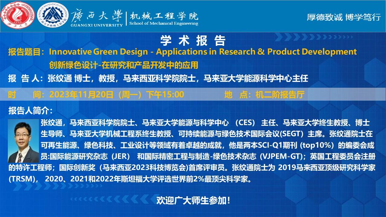 【太阳成集团学术报告】创新绿色设计-在研究和产品开发中的应用