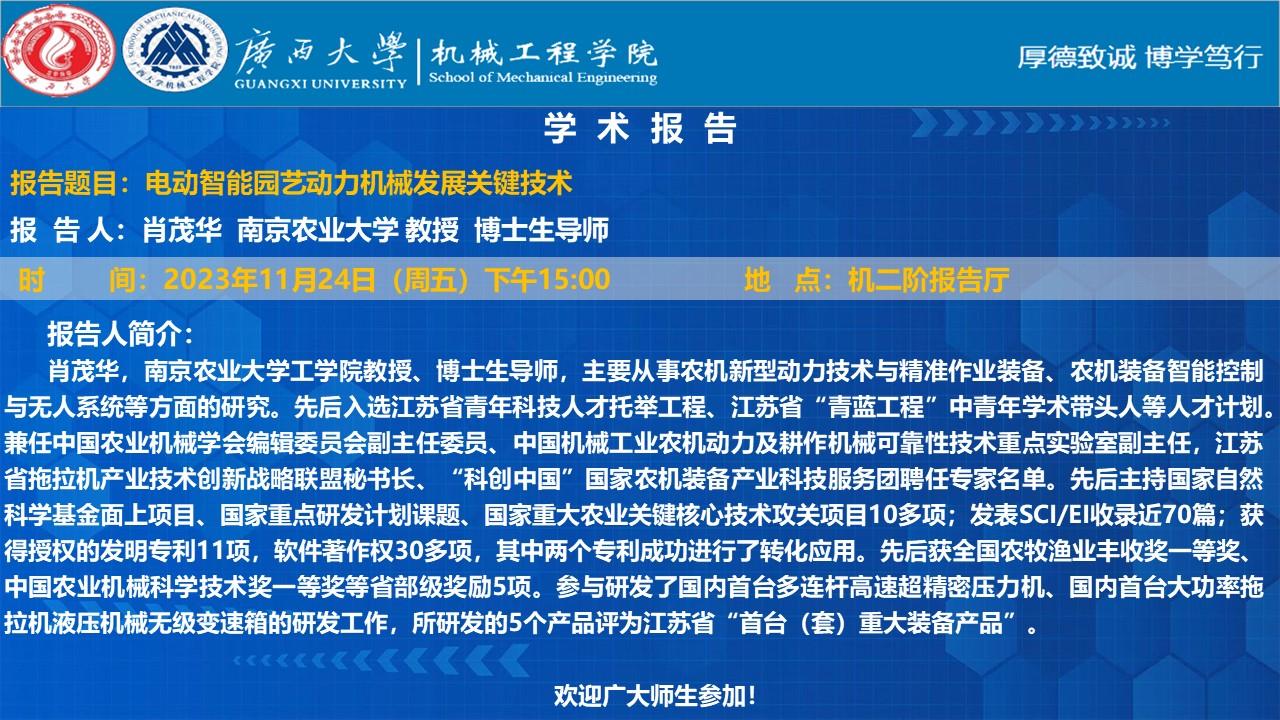【太阳成集团学术报告】 电动智能园艺动力机械发展关键技术