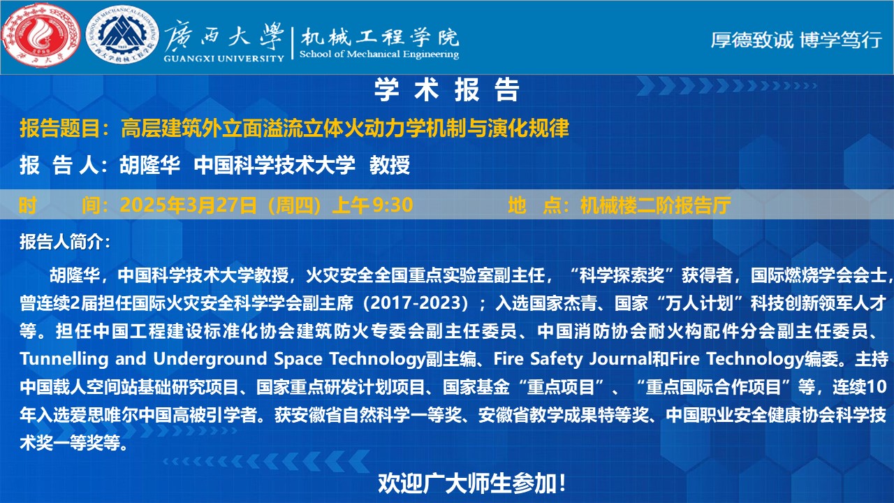 【太阳成集团学术报告】高层建筑外立面溢流立体火动力学机制与演化规律