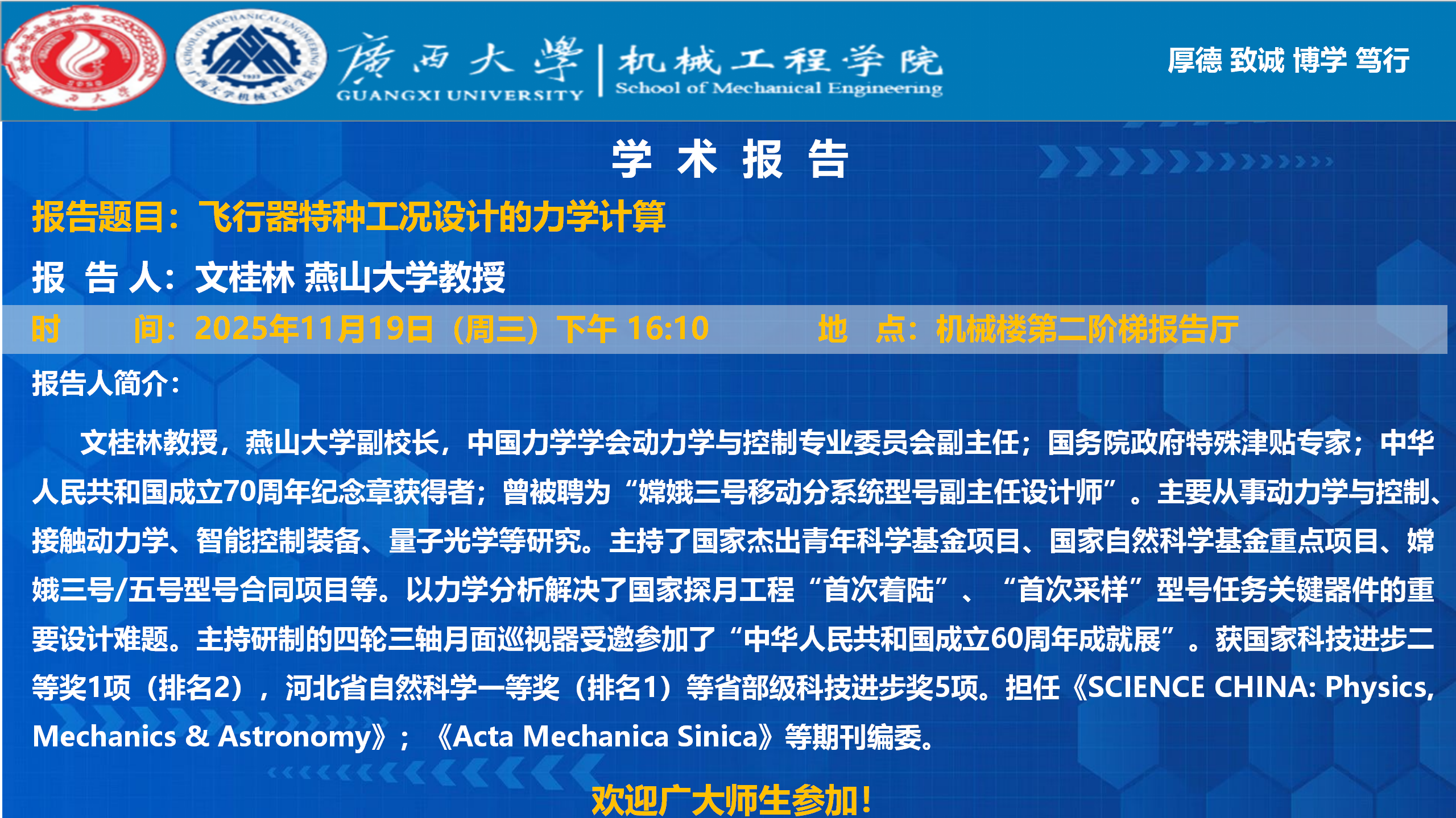 【太阳成集团学术报告】飞行器特种工况设计的力学计算