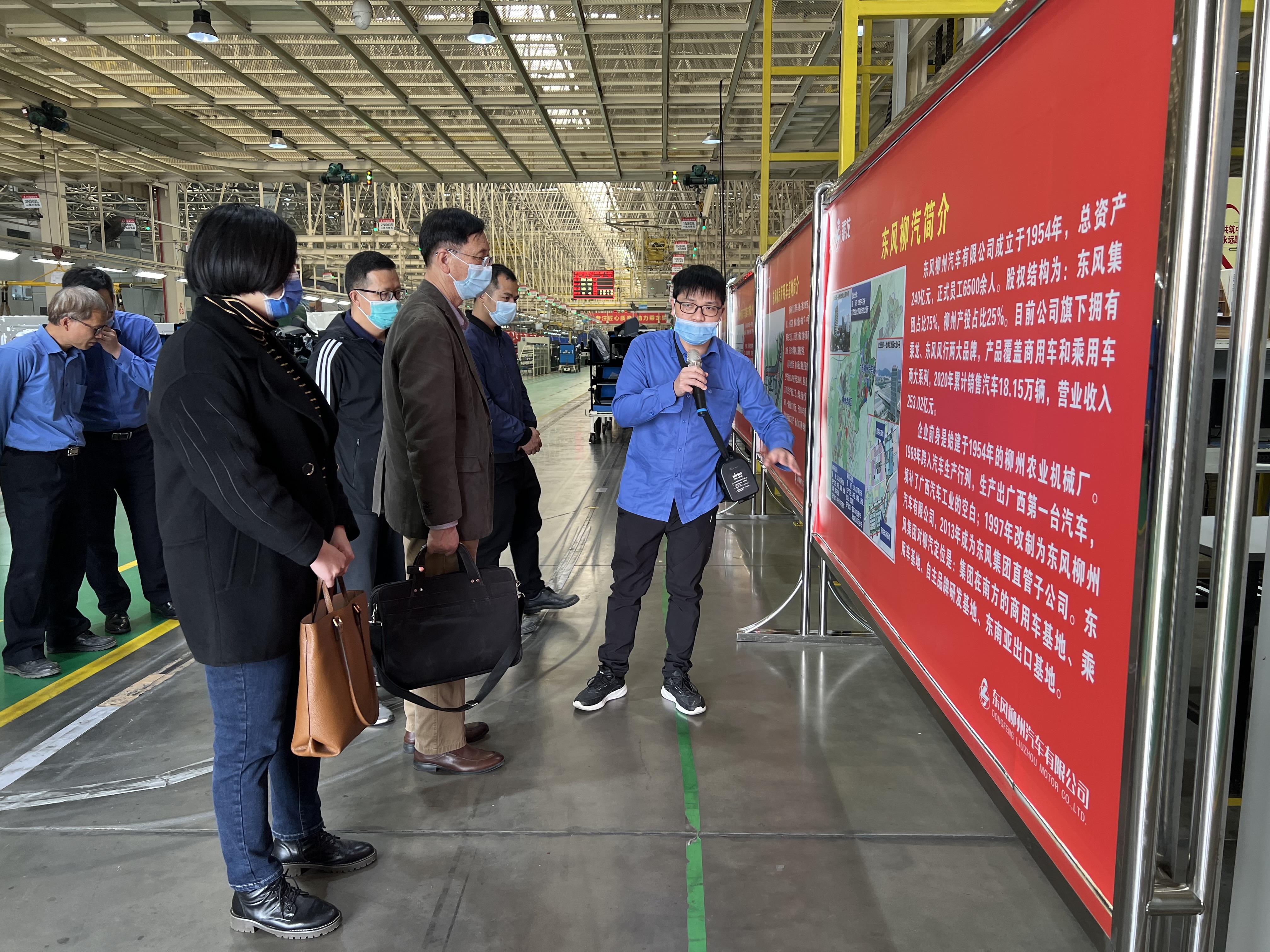 下午3点,考察团抵达东风柳汽进行考察。东风柳汽商务部冯高山部长等公司领导带领考察团先后参观了东风柳汽的数条主要生产线、新能源汽车研发试验中心,随后双方在会议室展开交流。陈勇院士详细介绍了个人的主要研究方向和研发成果,并就未来与东风柳汽加强校企合作开展产学研合作等问题进行了探讨。