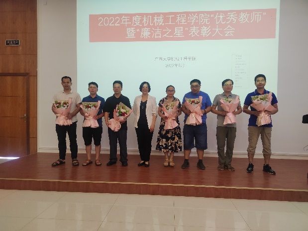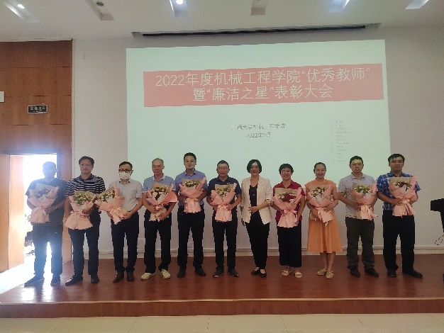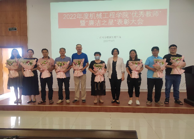会上,院党委书记卢婵江宣读了《关于表彰2022年度太阳成集团“优秀教师”、“廉洁之星”、“廉洁家训”的决定》。《决定》授予蒲明辉等49位同志2022年度太阳成集团“优秀教师”荣誉称号。学院领导为获奖的教职工颁发荣誉证书和鲜花,大会最后由卢婵江书记作总结发言。卢书记首先代表学院党委对获奖的全体教职员工表示了热烈祝贺,同时对全院上半年的工作表现和所取得的成绩给予了充分肯定,对学院下半年迎接教育部审核预评估、教育部工程教育认证中期考核以及教育厅的专业认证等重要工作进行了全面动员和工作部署。卢书记表示,机械工程学科近几年在各级领导的关怀和支持下,在人才引进、硬件改善、资金投入、办学场地等方面得到了较大的改善,为机械工程学科的发展创造了更好的条件,为太阳成集团的办学创造了更多的机遇。全体教职员工应凝心聚力,聚焦人才培养和科学研究,努力抓住学科发展历史新机遇,不忘初心、牢记使命,迎难而上,争创佳绩,努力让我院各项工作更上新台阶,争取以优异的成绩迎接党的二十大胜利召开!
