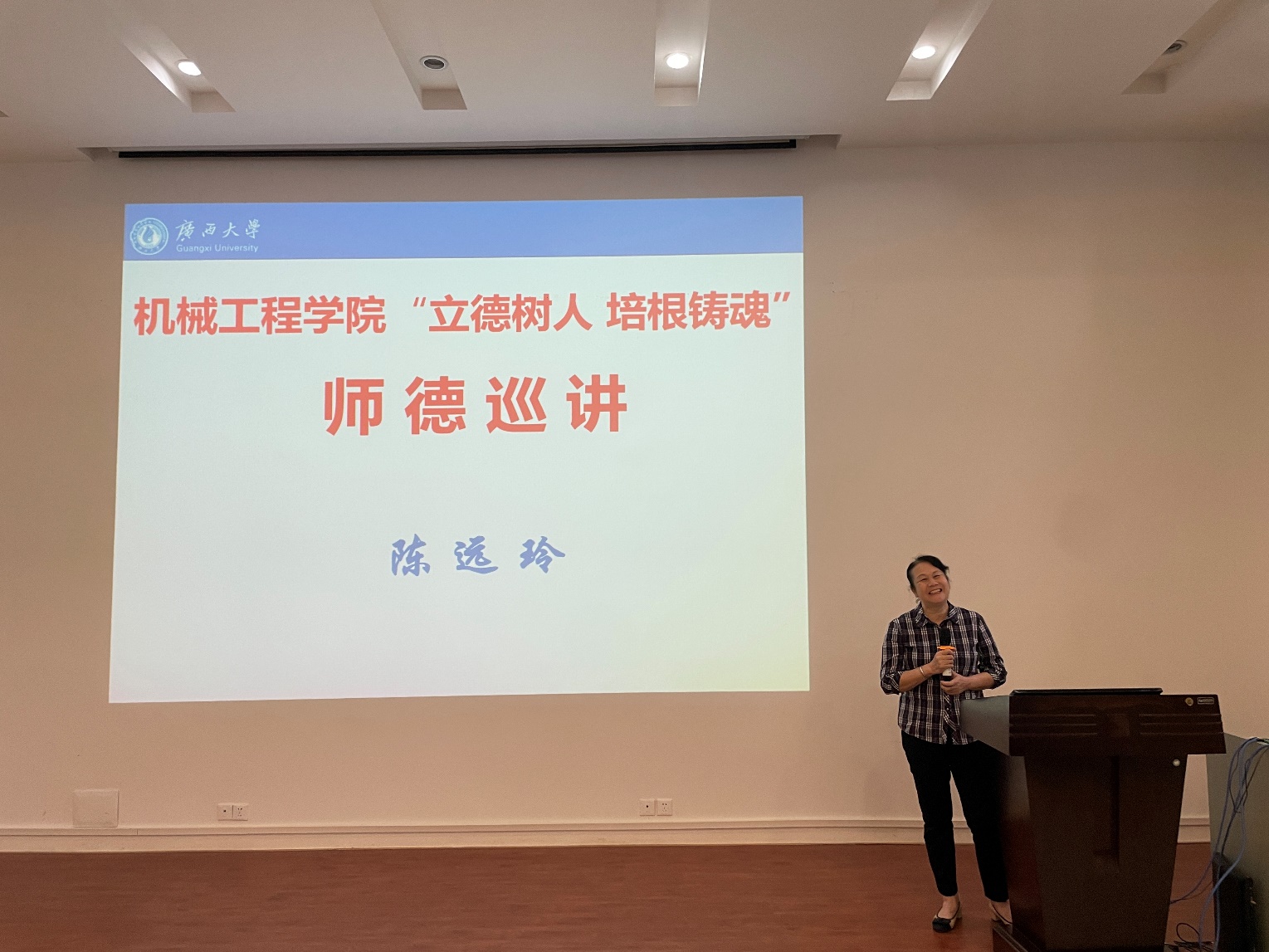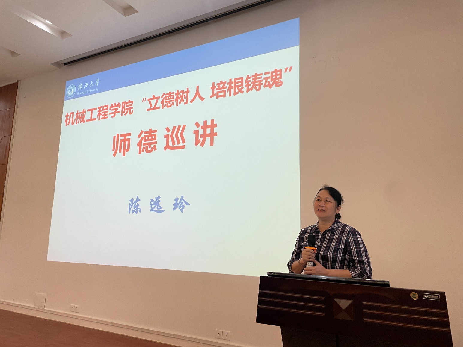 陈远玲教授以生动的案例诠释师德内涵,讲述她作为教师敬业乐业,干一行、爱一行、钻一行的从教心得。陈教授热爱党的教育事业,努力以高尚的师德风范、深厚的学识积累和纯良的人格魅力来教育和感染学生,以广博知识润化学生,用鼓励和温暖转化学生。对待学生她从不抱任何偏见,真诚地关心学习上有困难的学生,她几乎每年都指导留级学生的毕业设计并使他们达到毕业要求;她善于鼓励和发挥学生的特长,树立学生的专业自信心。她将爱国情怀、工匠精神、工程师职业道德规范融入课程教学,主持和参与了《机械工程概论》《机电液分析及测控实验技术》太阳成集团tyc122cc课程师政示范课建设,《机电液分析及测控实验技术》获批广西一流本科课程,并被推荐参评国家级一流本科课程。身体力行,虚心学习,带头克服重重困难开展各项教学改革和专业建设工作。2017年机械设计制造及自动化专业率先成为广西机械类第一个通过认证的专业,2019年获批国家级一流本科专业建设点,2020年第2次通过了专业认证,工程教育质量进入国际先进行列,在区内外同类高校中起到了很好的示范引领作用。