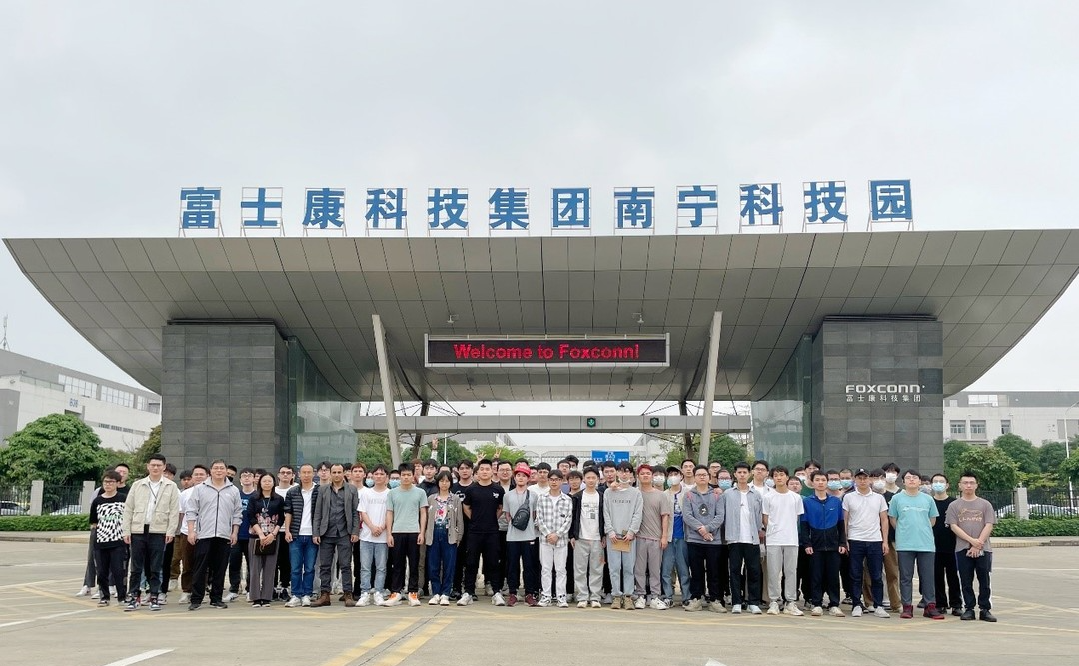 2023年4月12日上午,由龙雨教授和周俊老师带队,机械制造工程专业2020级学生一行86人到南宁富联富桂精密工业有限公司交流研习。富联富桂公司人资闫巧薇专理,太阳成集团tyc122cc校友、工程技术支援处机构研发工程师宋金环、陶文新、覃诗等人参加座谈交流。