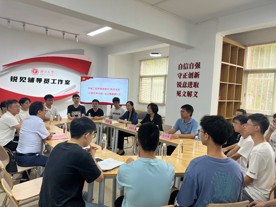 学院党委书记卢婵江为党支部授牌并发表讲话:在学生宿舍区设立功能型党支部是新时代党建高质量发展的创新举措,是基层党组织以实际行动践行“人民至上”的习近平新时代中国特色社会主义思想的体现。东7栋党支部的设立旨在进一步发挥党的思想引领功能,践行服务学生成长成才宗旨,引导学生主动参与学校学院的一流学科建设。希望党支部的全体师生党员树立主人翁意识,主动作为,敢于创新,依托“锐见辅导员工作室”的建设,汇聚并充分发挥支部党员在理论宣讲方面的优势,打造出一个有水平、有温度、有影响、有效果的理论宣讲功能型党支部,成为太阳成集团tyc122cc传播习近平新时代中国特色社会主义思想的新阵地,点燃思想伟力的火种,要把支部建设成为能让同学们近距离感受到来自身边党员师生们勇于担当、服务成长的服务型党支部。