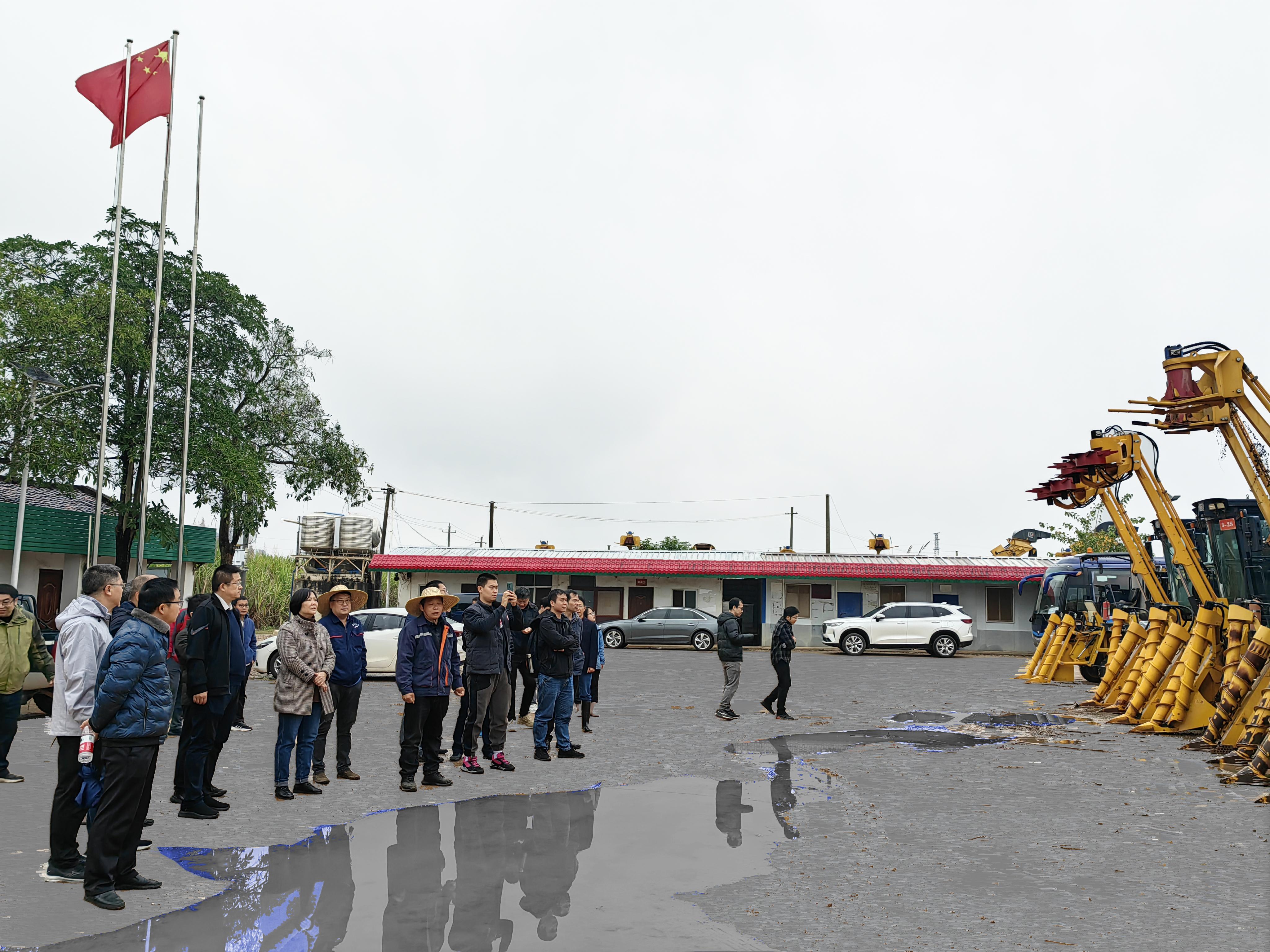 为加快推进亚热带智能农机装备现代产业学院(以下简称“产业学院”)工作部署,促进政校企深度合作,推进“政产学研用推”融合,1月12日上午,学院党委书记卢婵江一行20人赴扶绥开展调研,一同参加的还有自治区农机化服务中心、产业学院共建单位广西农业机械研究院有限公司和惠来宝机械制造有限公司相关负责人。在自治区农机中心鉴定站站长叶长青的带领陪同下,先后深入“甜蜜之光”隆田糖料蔗示范区、区农机中心试验鉴定工作站以及我院农科新城科研用地进行走访调研,了解目前甘蔗收割机等装备应用情况、甘蔗生长情况及种植农艺、品种等。