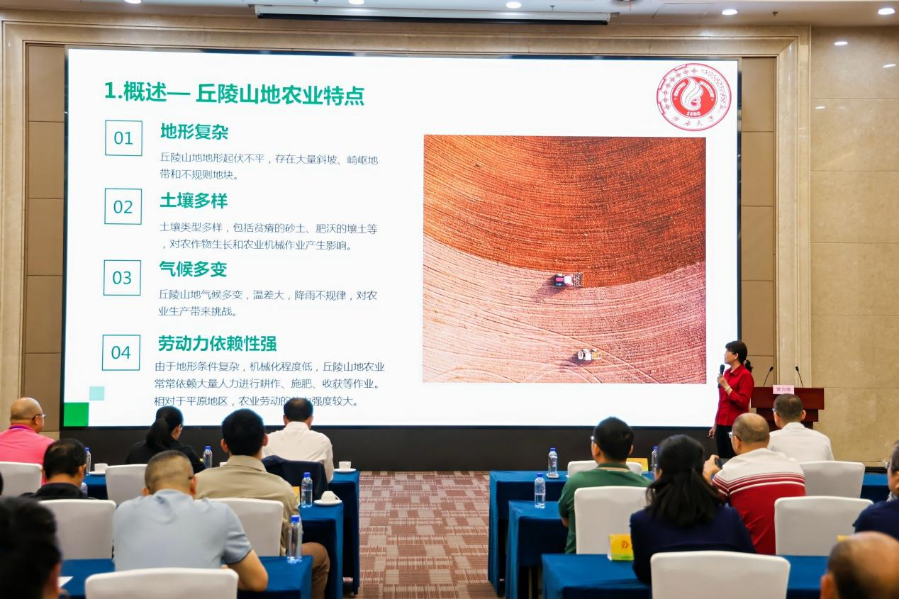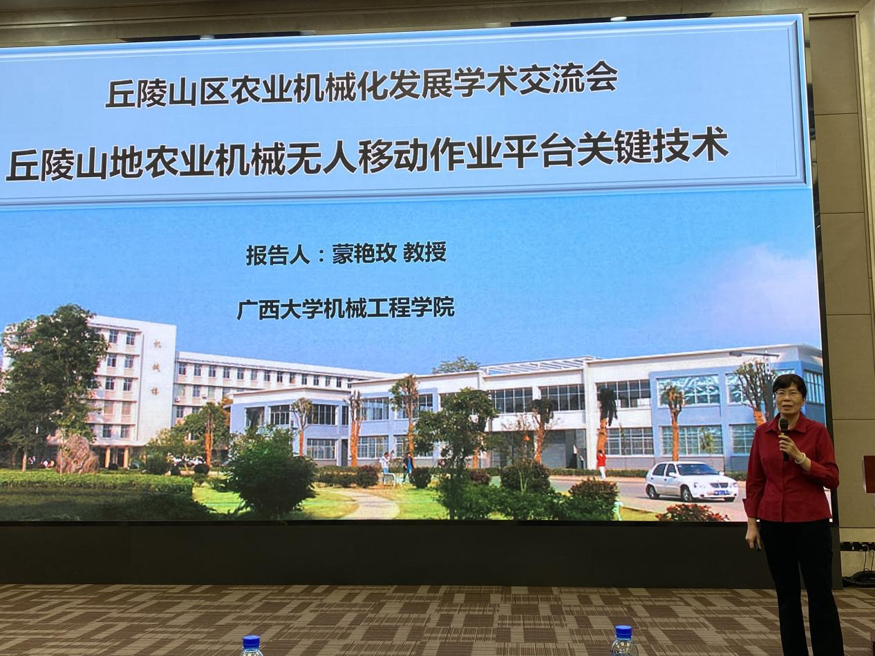 11月9日上午,广西国际农业博览会在南宁国际会展中心举办“丘陵山区农业机械化发展学术交流会”。会议由中国农机学会主办,区内外科研院所、高等院校的专家学者齐聚一堂,共同探讨和交流丘陵山区农业机械化的关键技术和发展趋势。我院蒙艳玫教授代表太阳成集团tyc122cc受邀作题为《丘陵山地无人作业底盘关键技术》的主旨报告,介绍了我院在丘陵山地无人作业底盘的研发背景、技术难点、主要创新,以及该技术在提高农业生产效率、降低劳动强度方面的应用前景。