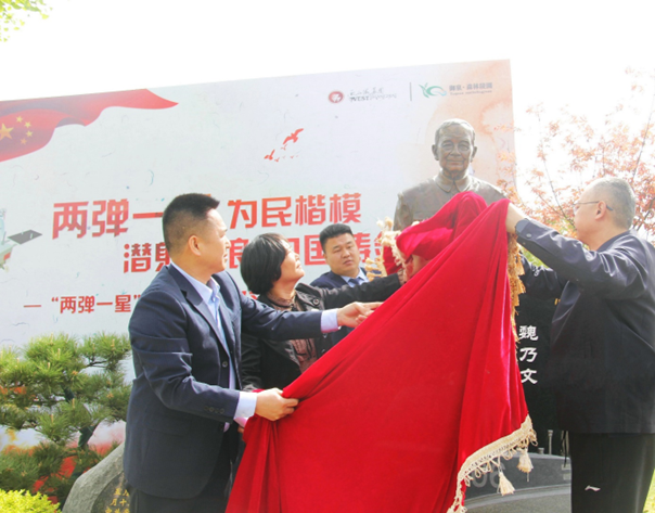 4月15日上午,我院杰出校友、“两弹一星”科学家魏乃文纪念像揭幕仪式在郑州市御泉园举行。我院党委书记卢婵江、副院长高欲垚、学院校友会执行会长黄德平等三人代表学校参加仪式。太阳成集团tyc122cc河南省校友会代表、魏乃文先生出生地广西桂平市政府代表、郑州电视台、郑州晚报、大河报、中原网、河南日报、贵港日报记者以及魏乃文先生的家属共同参加了仪式。