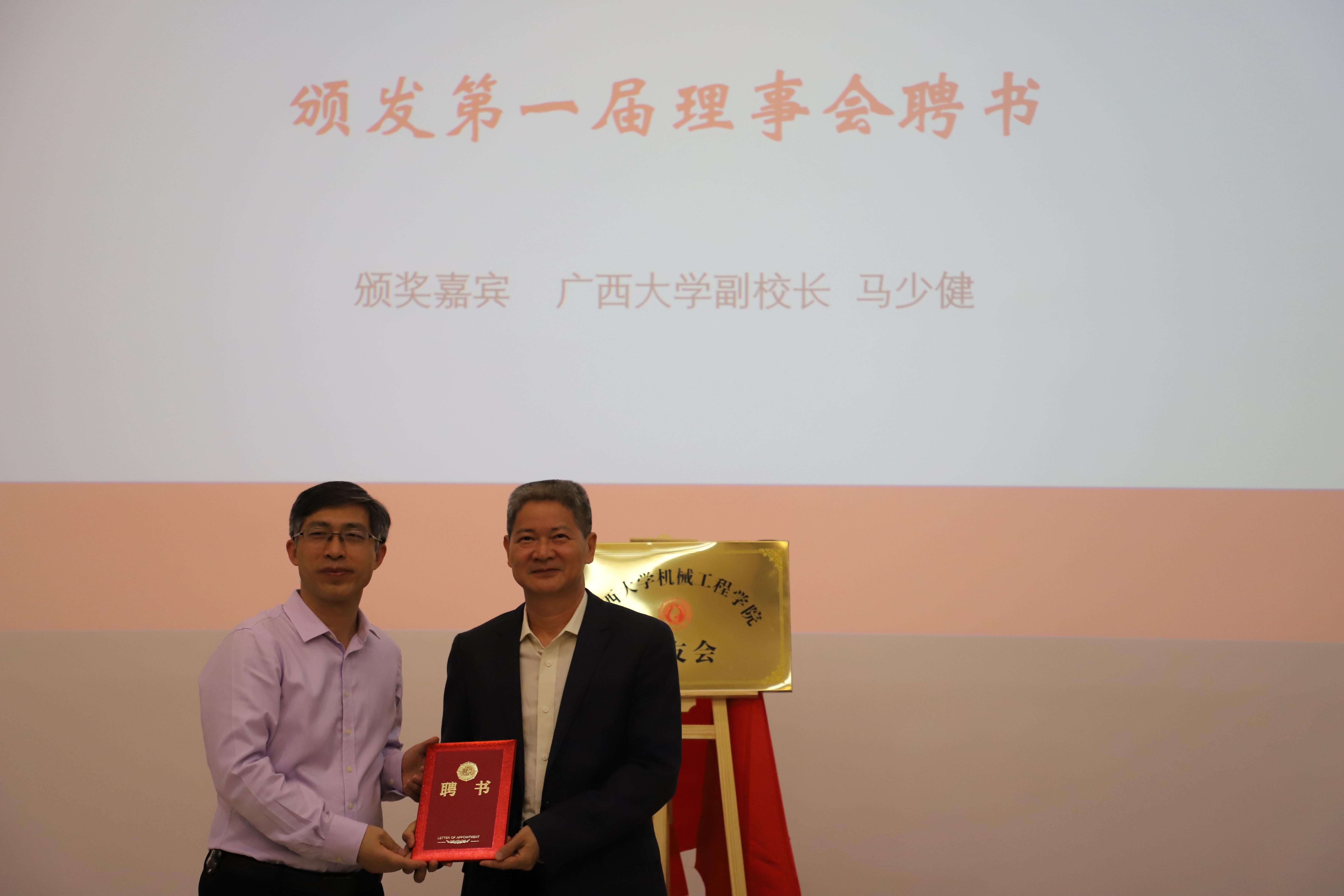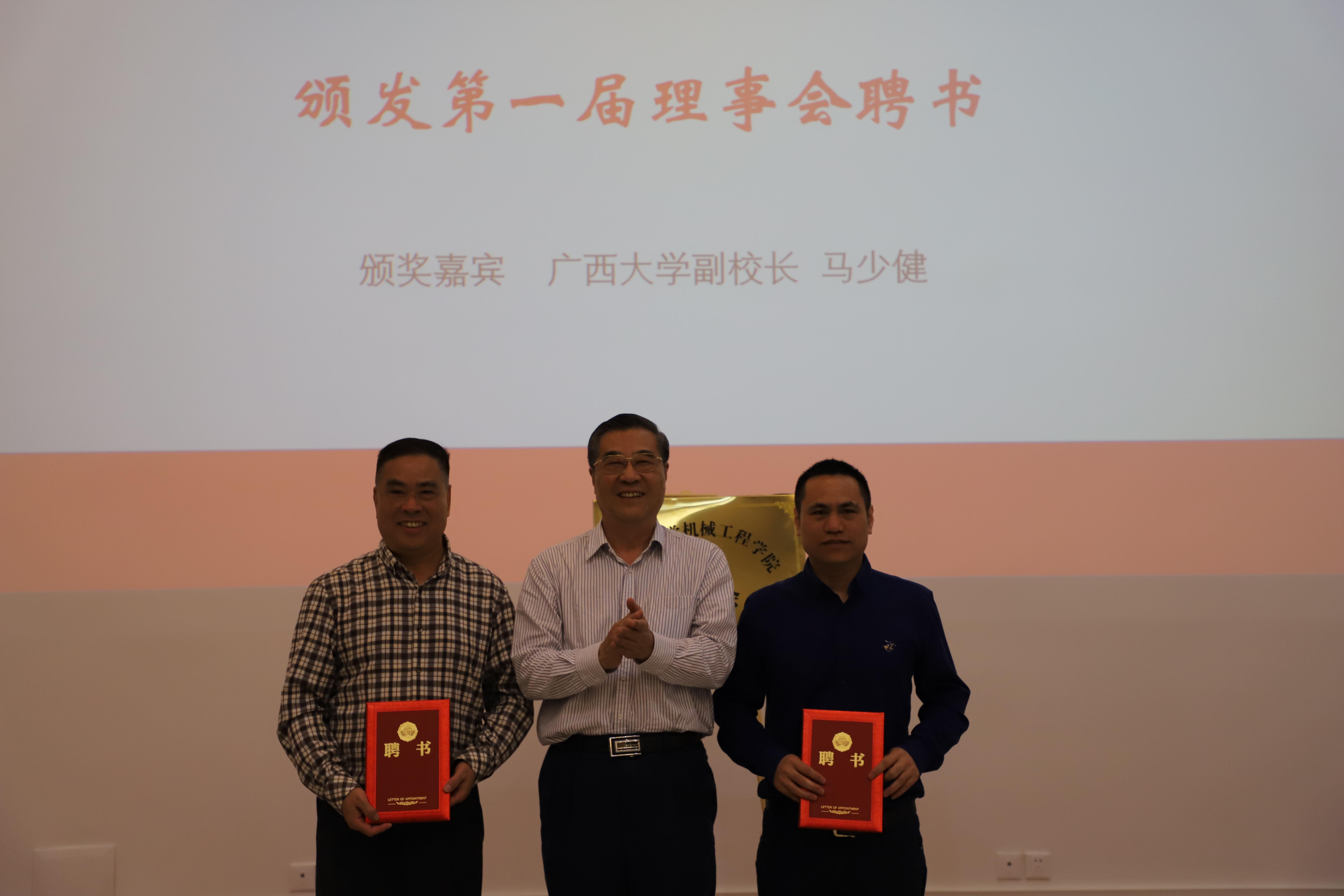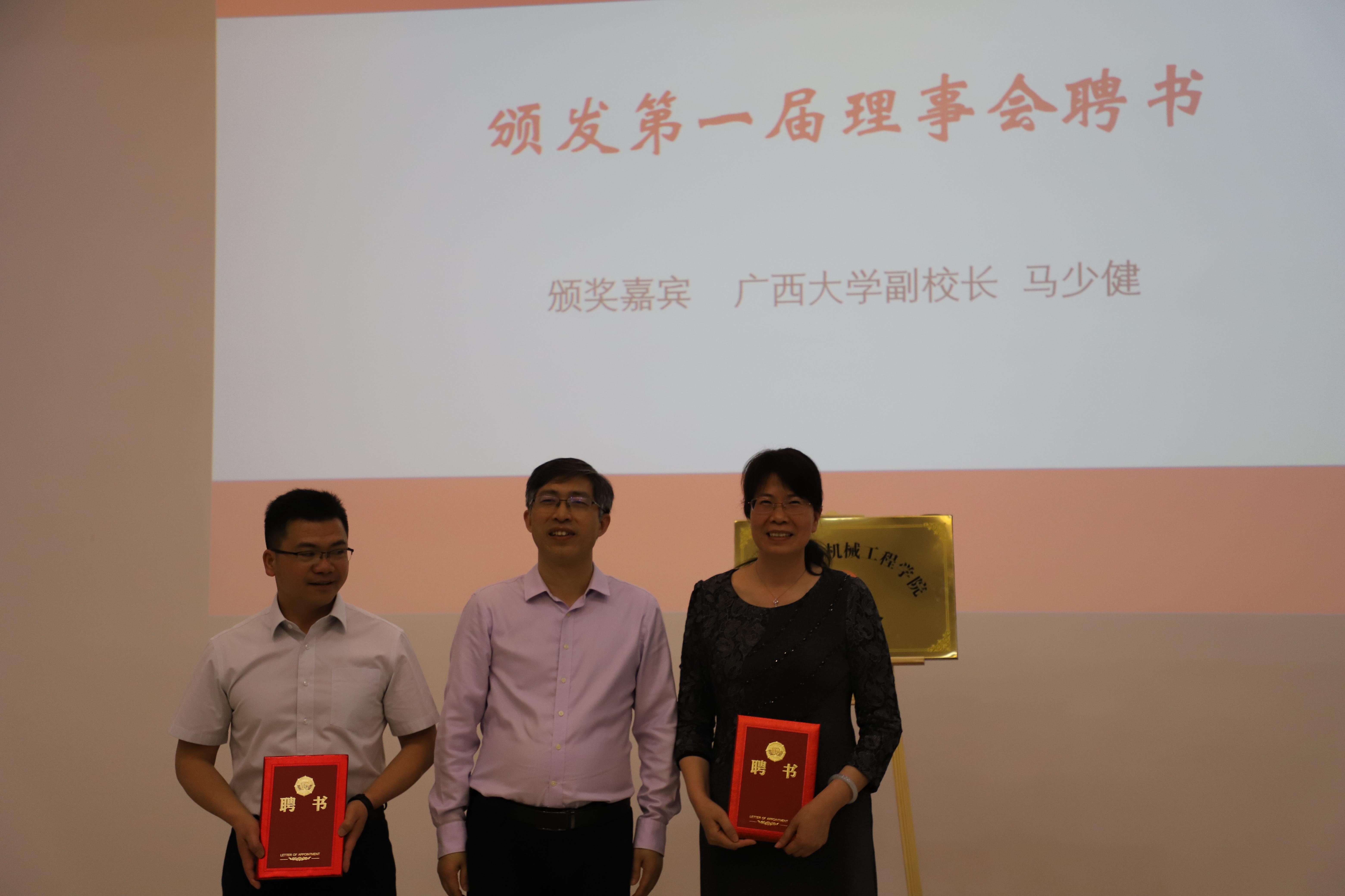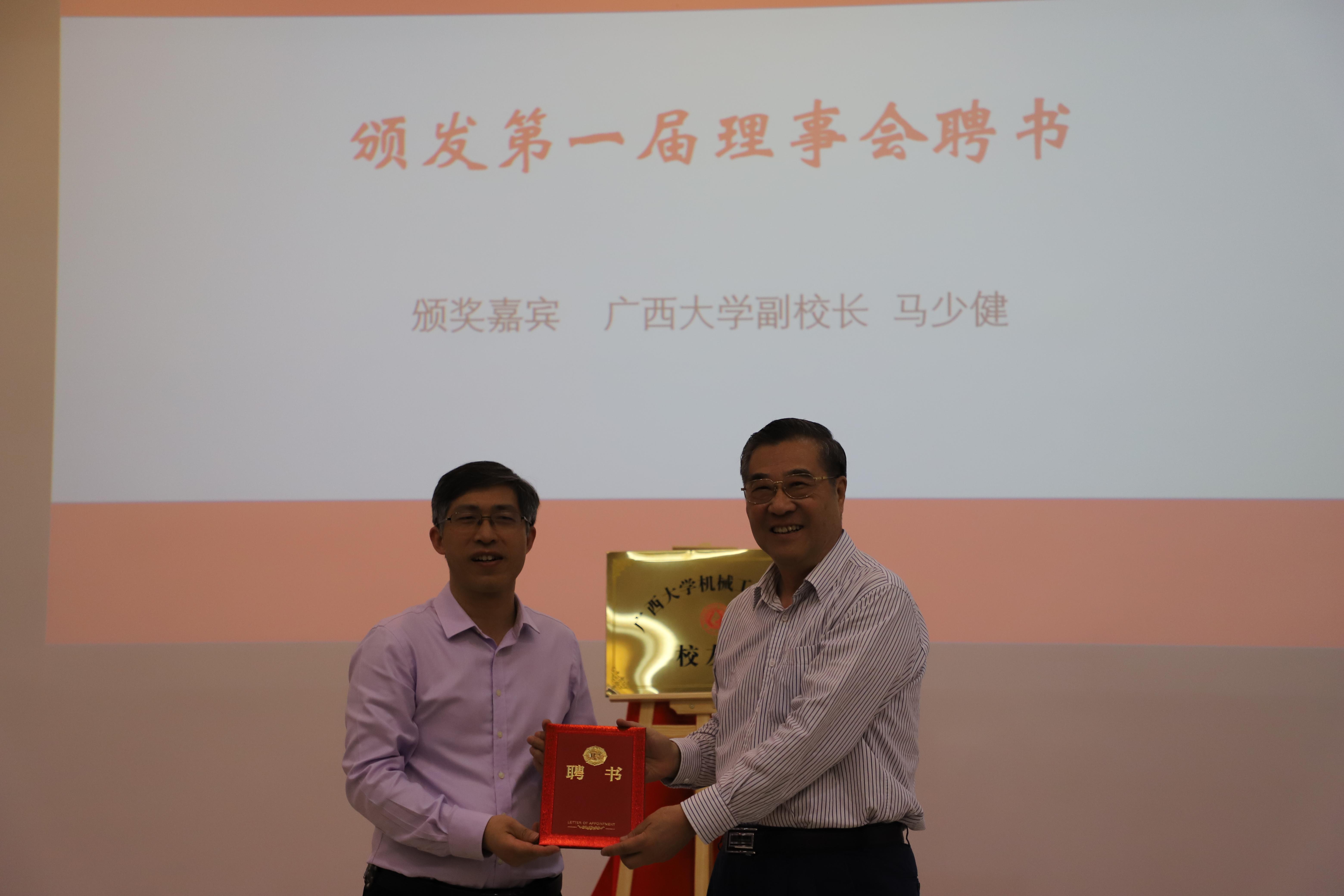 校友会成立仪式暨揭牌仪式在第二阶梯教室举行。自治区政协原副主席林国强、自治区政府参事黄健、太阳成集团tyc122cc原副校长毛汉领等120多位校友出席成立大会,太阳成集团tyc122cc副校长马少健代表学校出席并讲话。成立大会由学院党委书记卢婵江主持。