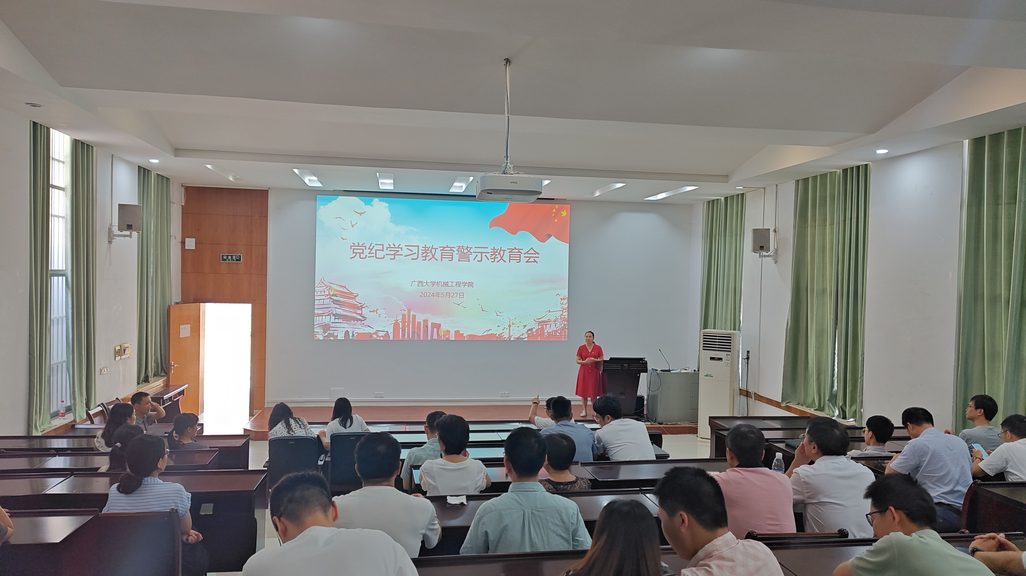 2024年5月27日下午,学院党委组织全体教职工党员在机械楼第二阶梯教室开展党纪学习教育警示教育会,集中观看警示教育系列专题片。观看前,学院党委副书记、纪委书记黄路明强调了党纪学习教育的重要性和要求。