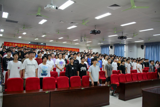 最后,全体人员共同高唱《国际歌》。预备党员在卢婵江的带领下进行入党宣誓,结束本次开班仪式。