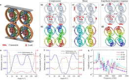 该研究提出行星齿轮力学超材料/超结构新构型,构建基于弯曲梁的行星齿轮力学超材料连续性能可调理论,探究行星齿轮力学超材料连续刚度可调理论及模态特征;开展双层行星轮系和拉式行星轮系单胞及2×2胞力学超材料的压缩、剪切以及谐响应计算,分析压缩弹性模量、剪切模量和幅频响应与控制变量的变化关系。结果表明:双层行星轮系和拉式行星轮系力学超材料的压缩弹性模量和剪切模量分别具有大幅连续可调范围,其幅频响应亦可通过控制变量进行调控。