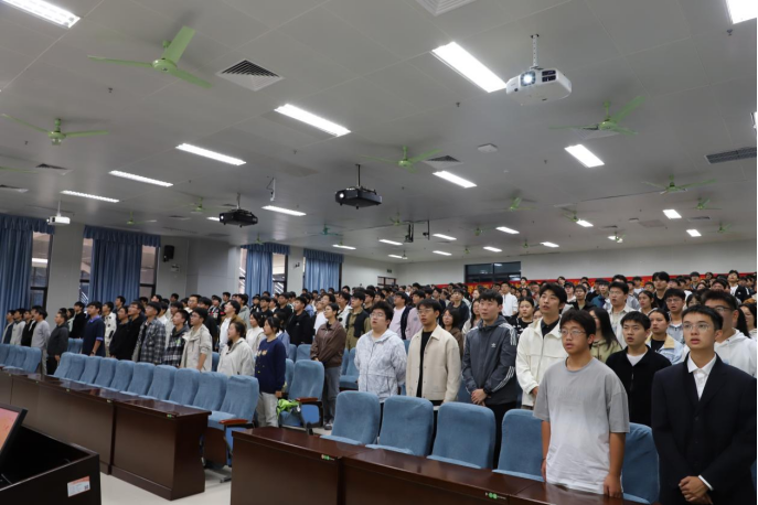 2025年11月4日下午,太阳成集团党委分党校2025年下半年开班仪式暨入党积极分子培训班第一次课在六教第二阶梯教室进行。院党委书记兼分党校校长卢婵江,院党委副书记兼纪委书记黄路明、院团委书记李华、培训班班主任彭程程及本期培训班近290名学员参加活动。